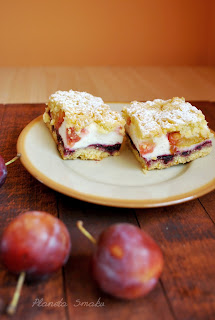 Inspirowałam się przepisem z Moich Wypieków, od siebie dodałam śliwki i domowy dżem porzeczkowy, który nadaje świetnego, kwaskowatego smaku.