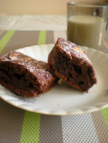 Piec w temperaturze 190ºC przez około 30 – 40 minut. Upieczone ciasto oprószyć cukrem pudrem.