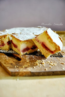 Uwaga! ciasto najlepiej smakuje drugiego dnia. Wtedy łatwiej też je pokroić, bo budyń nie rozlewa się na boki.