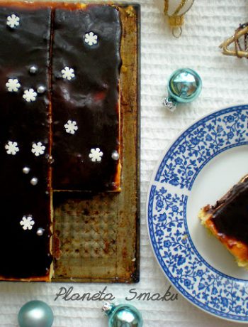 Masę serową wylać na podpieczony spód, wyrównać. Piec w temperaturze 160ºC przez 40 – 45 minut. Wystudzić w stygnącym piekarniku. Wyjąć, schłodzić.