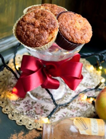 Do suchych składników wlać mokre, wymieszać łyżką tylko do połączenia się składników. Tak przygotowanym ciastem napełniać blachę do muffinek (wyłożoną papilotkami lub silikonowymi foremkami). Każdy dołek wypełnić do 3/4 wysokości. Wierch można przed pieczeniem posypać orzechami, skórką pomarańczową lub czekoladą. Piec przez około 25 minut w temp. 170 stopni.