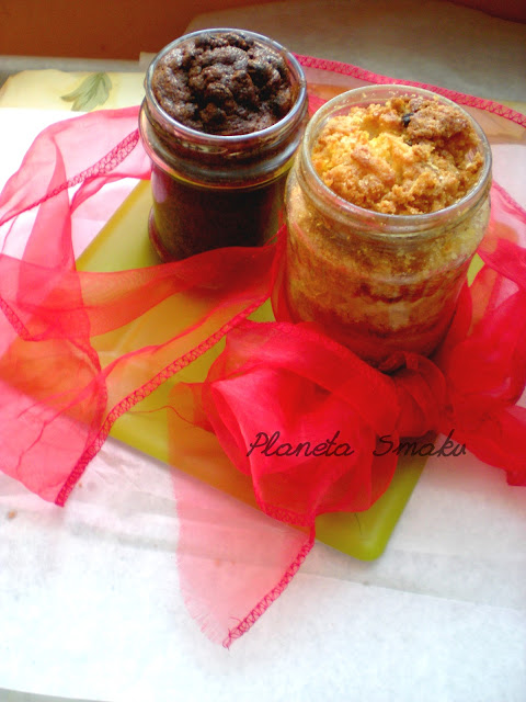 Przelać ciasto do słoików, napełniając je do połowy. Piec około 25 minut w temp. 180 stopni.
