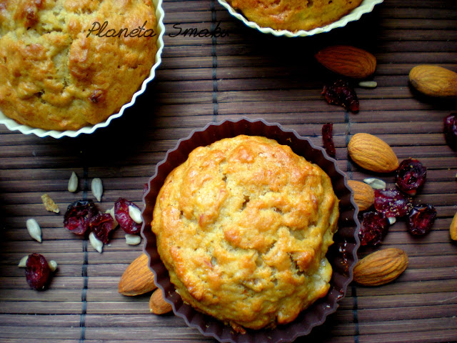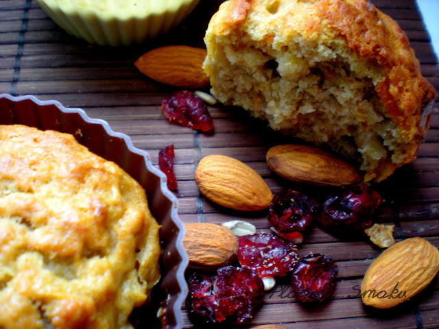 To jedne z pierwszych muffinek, jakie upiekłam. Nic dziwnego, że mam do nich sentyment i często powracam do tego przepisu 🙂 Są naprawdę proste w wykonaniu, jak to muffiny – nie potrzeba nawet miksera. Wybaczcie mi to, że znowu dołożyłam od siebie bakalie, po prostu bardzo lubię, jak coś mi chrupie pod zębami 🙂 Możecie je spokojnie pominąć.
