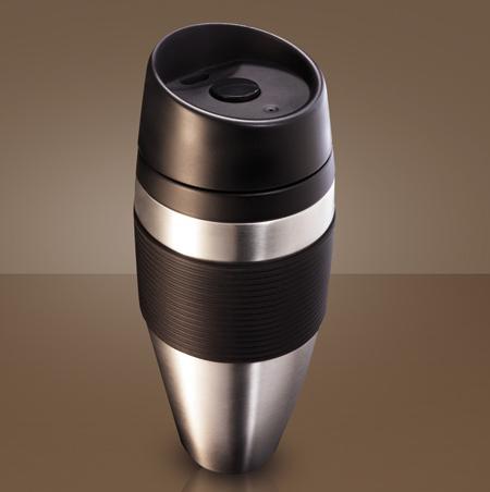 Po pierwsze: nic z niego nie cieknie! Pokrywka posiada fajny „pstryczek”, który w zależności od tego, czy chcemy akurat pić, czy też przetransportować naszą kawę/herbatę, otwiera lub zamyka otwór, przez który można pić.