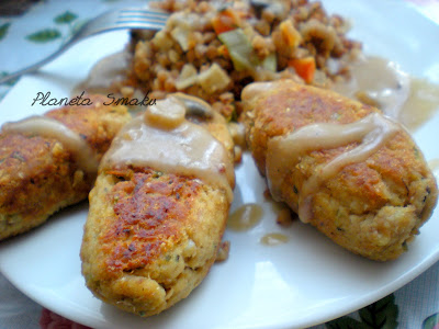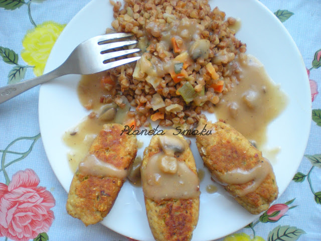 To danie wymyśliłam pod wpływem… resztek pieczonego kurczaka, który pozostał po niedzielnym obiedzie. Pierś i nogę z kurczaka zmieliłam, dodałam tuńczyka w puszce i parę innych składników. I wyszedł z tego fajny pomysł na szybki, tani obiad. Paluszki tuńczykowo-drobiowe podałam z kaszą gryczaną z warzywami oraz sosem pieczarkowym. Polecam, to naprawdę smaczne połączenie!