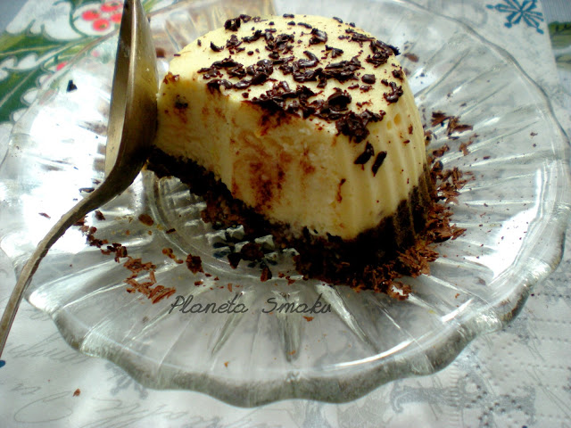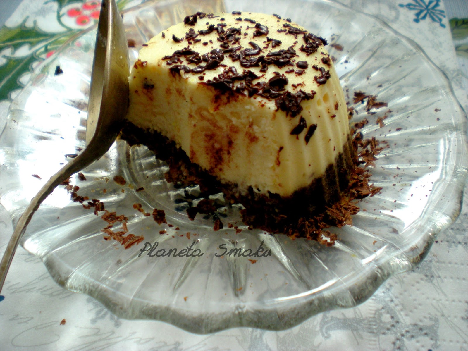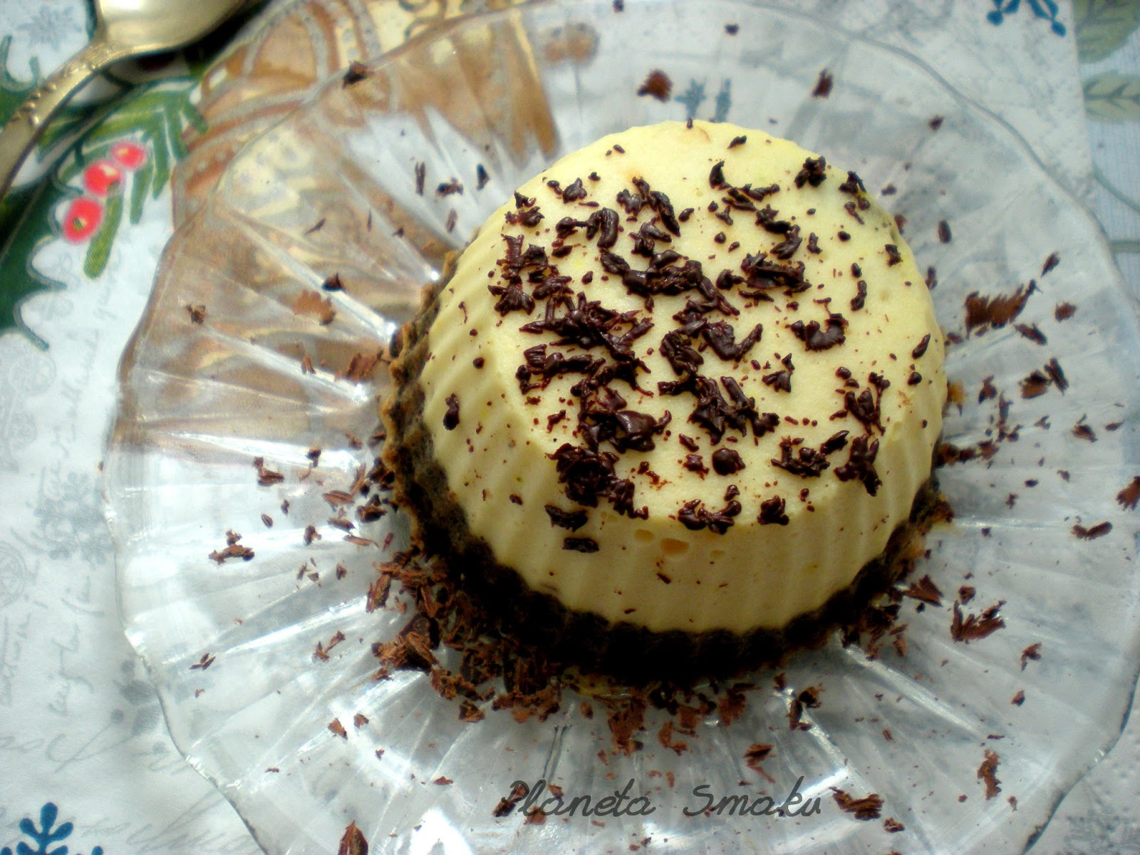 Na dnie piekarnika ustawić naczynie z gorącą wodą. Serniczki ustawić na środkowej kratce piekarnika i piec przez 5 minut w 175 stopniach, później obniżyć temperaturę do 120 stopni i piec przez kolejne 20 minut. Wyjąć z piekarnika i ostudzić. Można jeść po wystudzeniu lub po schłodzeniu w lodówce (wówczas masa będzie bardziej kremowa).