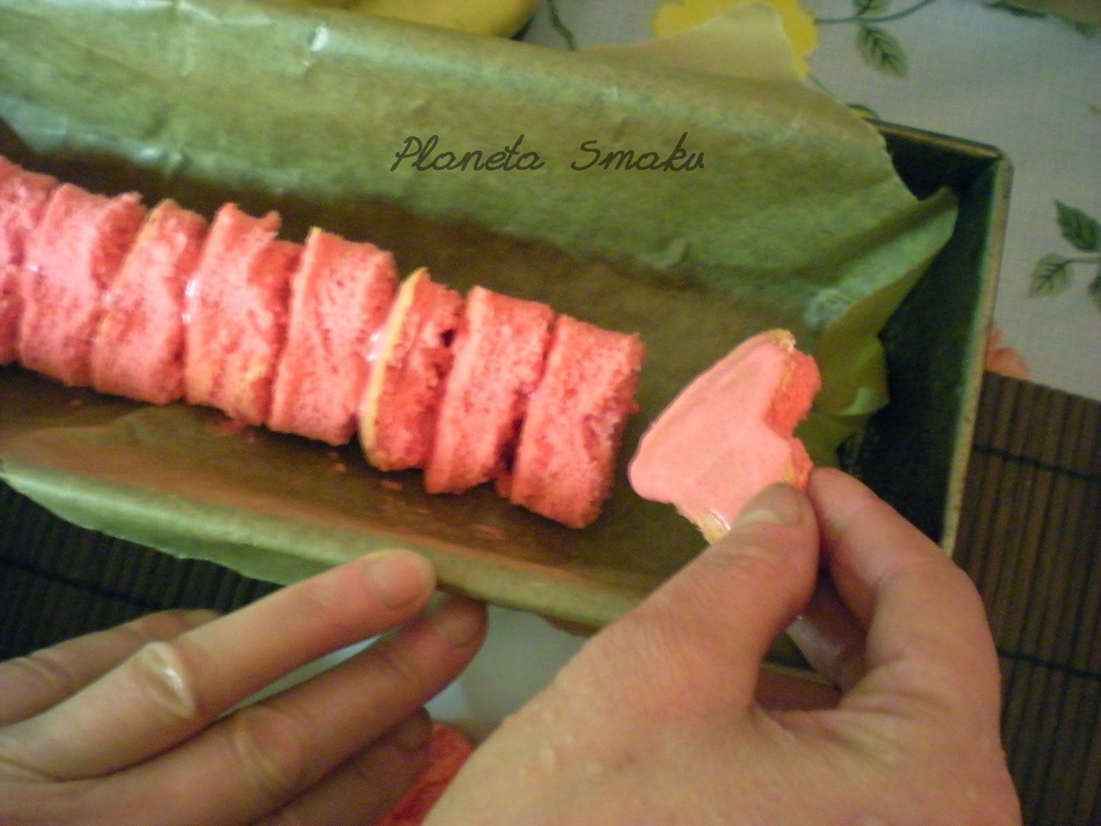Różowe ciasto biszkoptowe: