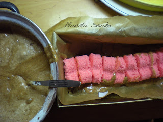 Odłożyć na bok ok. 2 łyżki ciasta. Pozostałą część przelać do podłużnej formy (u mnie keksówka), wyłożonej papierem do pieczenia. Piec przez ok. 15 minut w 160 stopniach. Po tym czasie wyjąć ciasto, pozostawić do ostudzenia.