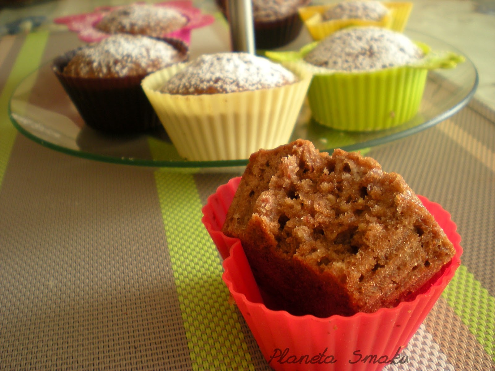 Ciasto nakładać do foremek na muffinki (użyłam silikonowych), prawie do pełna. Piec w 170 stopniach przez 30 minut. Posypać cukrem pudrem.