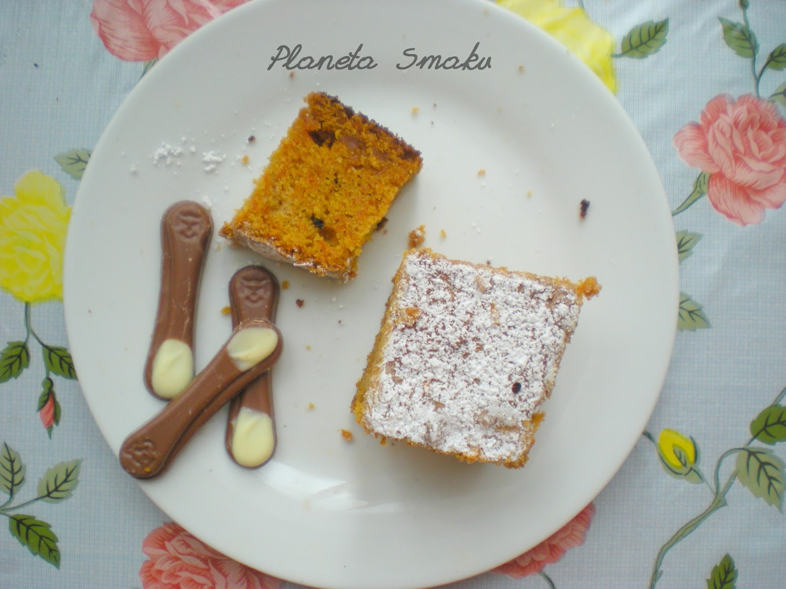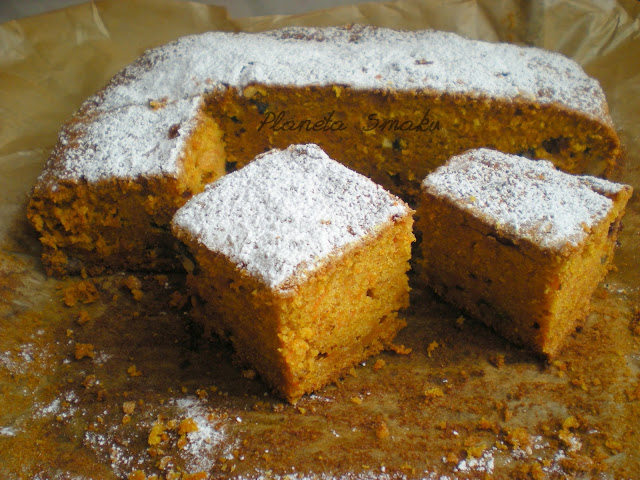 Dlaczego? Otóż wypieki z tym cudownie pomarańczowym warzywem są pyszne i dodatkowo przywodzą mi na myśl słoneczne dni. Czy to ten karoten? Być może 😉 W każdym razie ciasto marchewkowe, jakie upiekłam wczoraj, podbiło moje (i nie tylko) serce od pierwszego wejrzenia, a potem pogłębiło tę miłość od pierwszego kęsa. Jest PRZEPYSZNE. Puszyste, lekko wilgotne, fajnie uzupełnione przez garść posiekanych orzechów. Początkowo miałam w planach przełożenie go kremowym serkiem, ale kiedy zobaczyłam, jak wyrosło, zrezygnowałam. Wystarczyła odrobina cukru pudru, by w całości zwieńczyć to ciasto 🙂