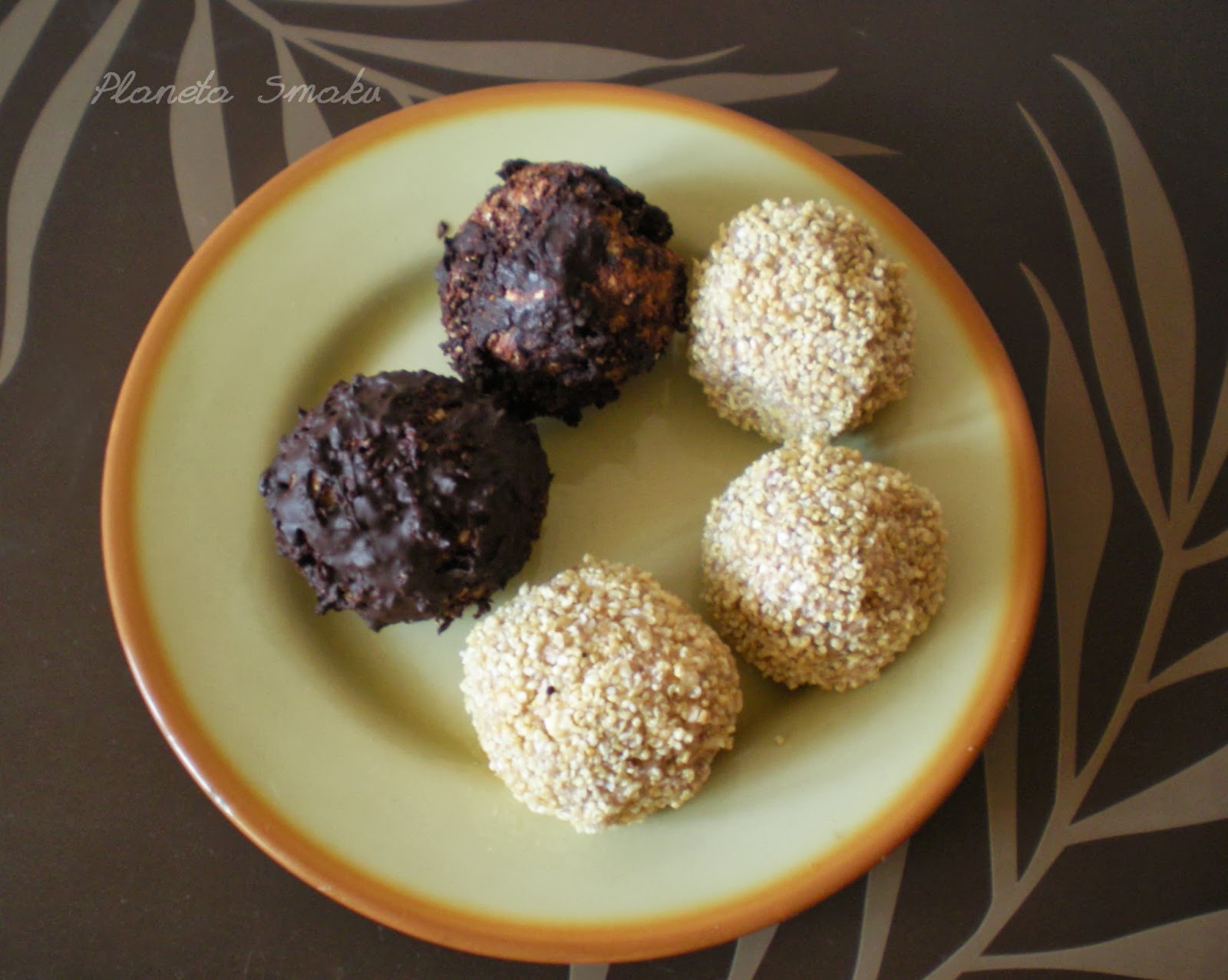 Właściwie powinnam napisać – podwójnie amarantusowe. Użyłam bowiem ziaren amarantusa ugotowanych na mleku razem z kaszą manną oraz amarantusa ekspandowanego, do obtoczenia tych małych kuleczek. Muszę powiedzieć, że efekt tego kulinarnego eksperymentu przerósł moje oczekiwania. Nie dość, że zdrowe i naprawdę sycące, to jeszcze takie smaczne, że żałowałam, że wyszło mi tylko 5 sztuk… Bardzo polecam. I radzę od razu zrobić wszystkie w polewie czekoladowej.. 😉