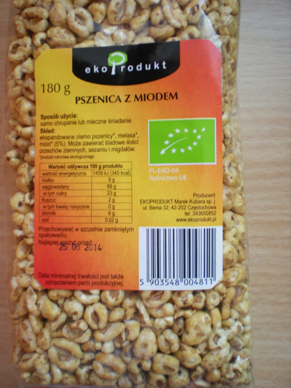 Część babeczek posypałam dodatkowo pszenicą z miodem, którą dostałam od firmy Ekoprodukt. Smakuje trochę jak płatki Kangus, przypominają mi one smak dzieciństwa 🙂