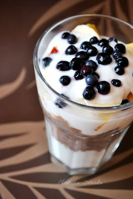 owoce – u mnie jagody, banan i brzoskwinia