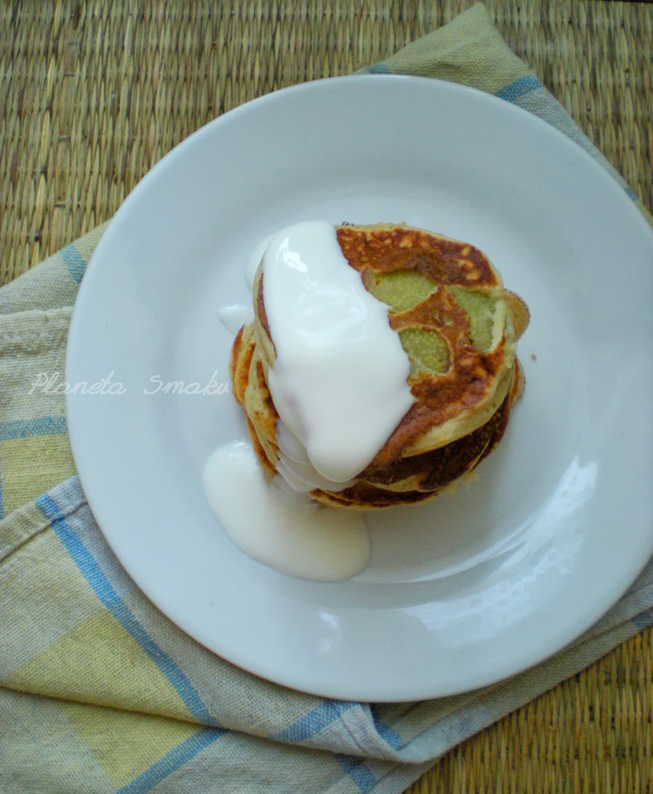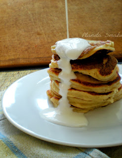Jadę do mojego śniadaniowego guru, więc teraz ostatni raz przed wyjazdzem mogę pochwalić się własnym śniadaniem 😀 Biała czekolada w proszku – nawet nie wiedziałam, że mam coś takiego w domu. A jako składnik placuszków posłużyła znakomicie. Dodałam jeszcze kilka plasterków rabarbaru, który samotnie leżał w lodówce. Pyszne te moje placuszki, pochwalę się, są naprawdę pyszne! 😀