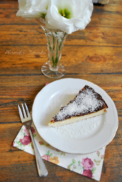 Skoro przytrafia się taka okazja, trzeba zaprezentować coś dobrego. Waniliowy sernik – klasyka. Bez spodu, bez zbędnych dodatków, ozdobiony jedynie polewą i wiórkami kokosowymi. Prosty, pyszny, sprawdzony. Częstujcie się – ten sernik jest dla Was 🙂