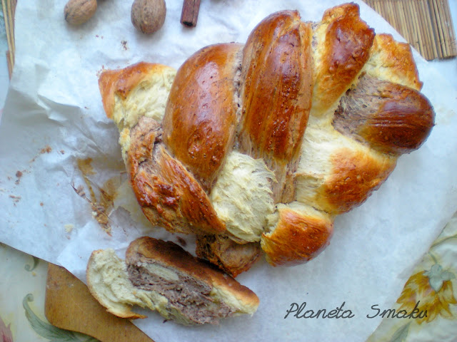 Chałkę posmarować roztrzepanym jajkiem i włożyć do nagrzanego piekarnika. Piec ok.30 min w temp. 180 st.