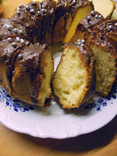Wykorzystując wspaniałości, które dostałam, upiekłam babkę pomarańczową. Oblana polewą i udekorowana perełkami pięknie prezentowała się na naszym stole. A do tego – jest naprawdę pyszna! I mówię to z pełną odpowiedzialnością, nie każda babka mi smakuje. Ta jest z pewnością warta wypróbowania. Polecam!