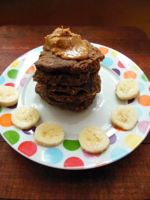 Na patelni rozgrzać odrobinę tłuszczu. Smażyć placki z dwóch stron. Podawać z ulubionymi dodatkami (u mnie masło orzechowe).