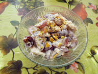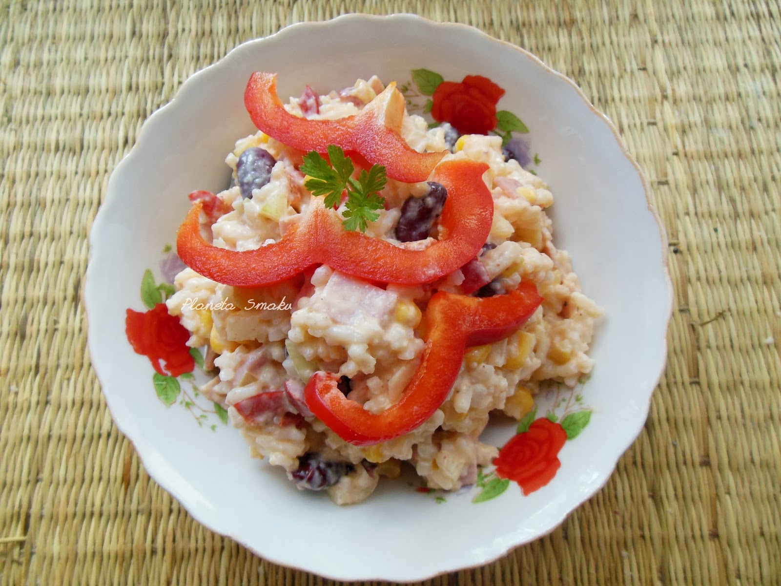Sałatka z ryżem, pomidorem, kurczakiem, orzeszkami i curry