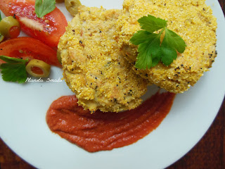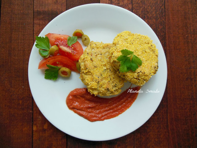 Nic nie poradzę, że tak bardzo lubię różnego rodzaju kotlety. Szczególnie te w wersji wege, chociaż dobrym mielonym też nie pogardzę 😉 Tym razem poeksperymentowałam z soją. I powiem szczerze, że jestem bardzo zadowolona z efektu. Złociste dzięki panierce z kaszy kukurydzianej, delikatne, nie rozpadające się, foremne. Pieczone w piekarniku, chociaż usmażone na patelni też z pewnością zdałyby egzamin. Jedynie czas gotowania soi może być kłopotliwy… Ale jeśli dobrze rozplanujemy przygotowanie takich kotlecików, nie powinien to być problem 🙂 Polecam!