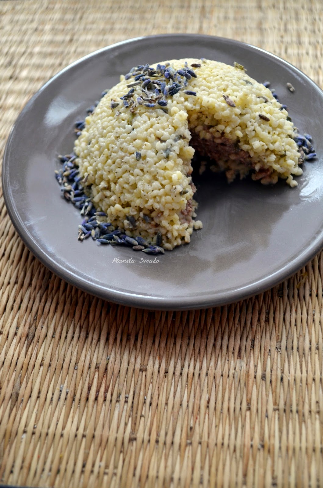 Kaszę podprażyć w rondlu. Przelać wrzątkiem, odlać wodę i zalać zimną. Doprowadzić do wrzenia, dodać lawendowe mleko i gotować do miękkości pod przykryciem (ok. 15 minut).
