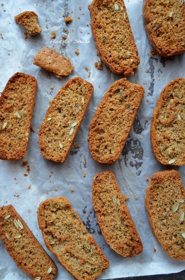 Upiekłam swoje pierwsze biscotti! Te podwójnie pieczone, włoskie ciasteczka są oryginalne w smaku i naprawdę warte wypróbowania. Występują w przeróżnych rodzajach, jednak zazwyczaj wypełnione są bakaliami, czekoladą lub suszonymi owocami. Ja spróbowałam wersji pełnoziarnistej, z pestkami dyni. Przyjemnie chrupiąca przekąska do jesiennej kawy lub herbaty 🙂