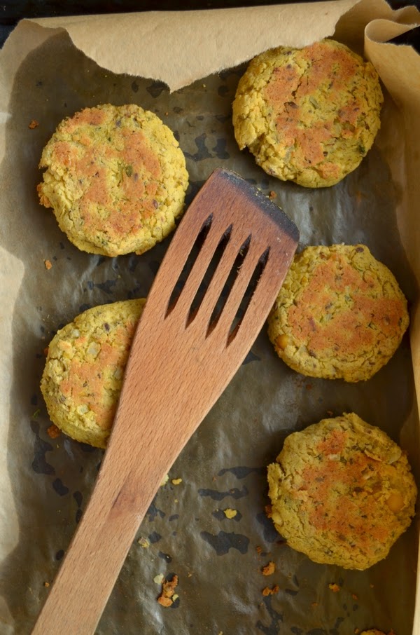 Do wegetariańskich kotlecików nie trzeba mnie namawiać. Uwielbiam je do tego stopnia, że codziennie mogłabym jeść inny rodzaj tych burgerów (bo przecież jest tyle możliwości!). Uwielbiam, gdy na talerzu jest dużo warzyw. Pieczone kotleciki z ciecierzycy okazały się na tyle pyszne, że na pewno będę powtarzać taki obiad częściej. Szczególnie, że zbliżający się wielkimi krokami rok akademicki skłania do poszukiwania potraw, które z łatwością można zapakować i zjeść na uczelni. Za inspirację bardzo dziękuję Mai z bloga Pozytywne Żywienie!