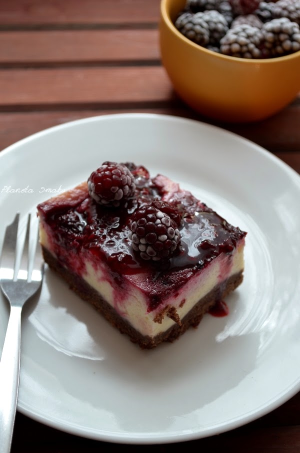 Jeżyn w tym roku miałam pod dostatkiem. Ostatnie owoce mama przyniosła z działki całkiem niedawno, co stało się dobrym powodem do upieczenia ciasta na zakończenie jeżynowego sezonu. Padło na sernik, bo dawno go już nie piekłam. Z kruchym, kakaowym spodem i lekko kwaskowatymi owocami na górze… Bardzo dobra kompozycja! 🙂