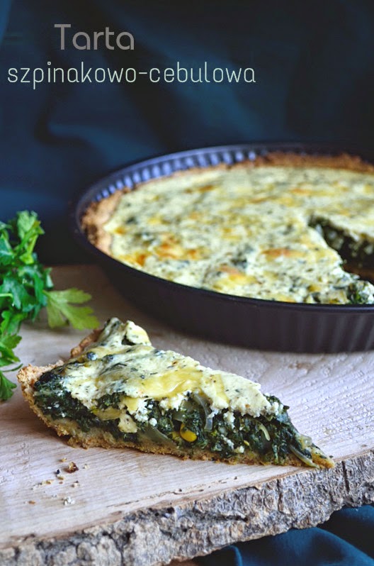 spód z dodatkiem mąki pełnoziarnistej, ziół prowansalskich i czarnuszki, dobrze doprawiona masa cebulowo-szpinakowa zapieczona pod pierzynką śmietankowo-jajeczną z żółtym serem… To jest naprawdę pyszne! Polecam! 🙂