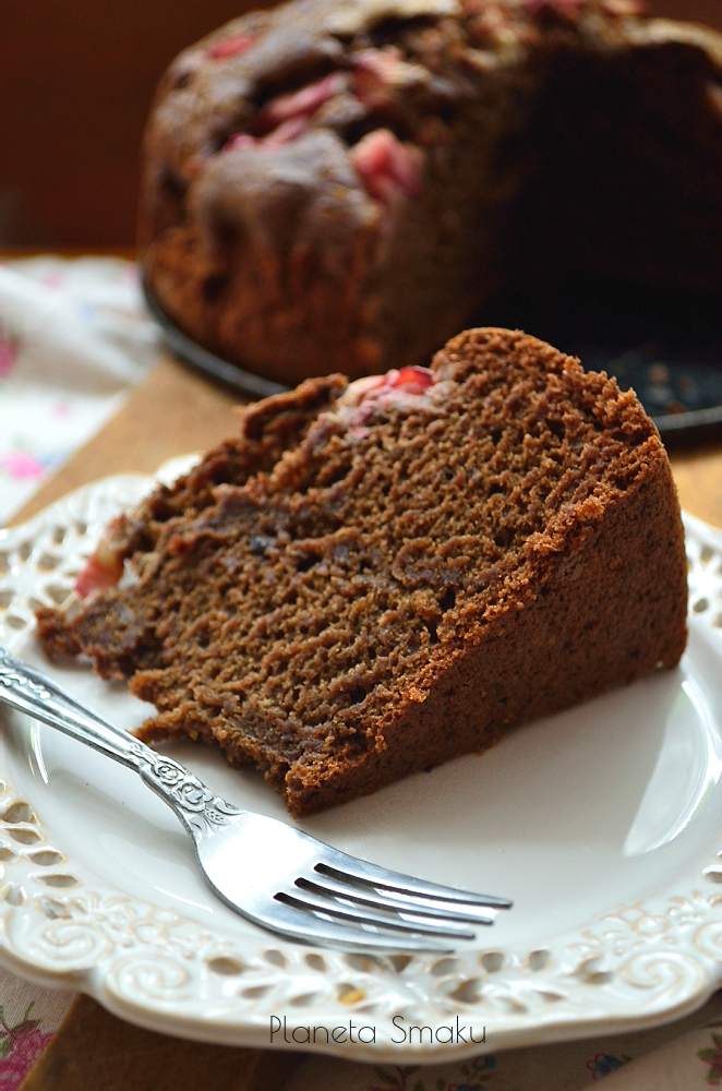A na pokrzepienie – ciasto. To moja ulubiona metoda, kiedy za pasem testy, kolokwia i egzaminy. To moja ucieczka od masy notatek, moja chwila odpoczynku, zresetowanie umysłu przed kolejną powtórką. I uwierzcie – sprawdza się! Jest ciasto, są pozytywne oceny 😉 Dlatego wszystkim tym, którzy potrzebują wzmocnienia, polecam tę metodę. Proste ciasto czekoladowe z rabarbarem sprawdzi się idealnie. Szybko i bardzo smacznie!