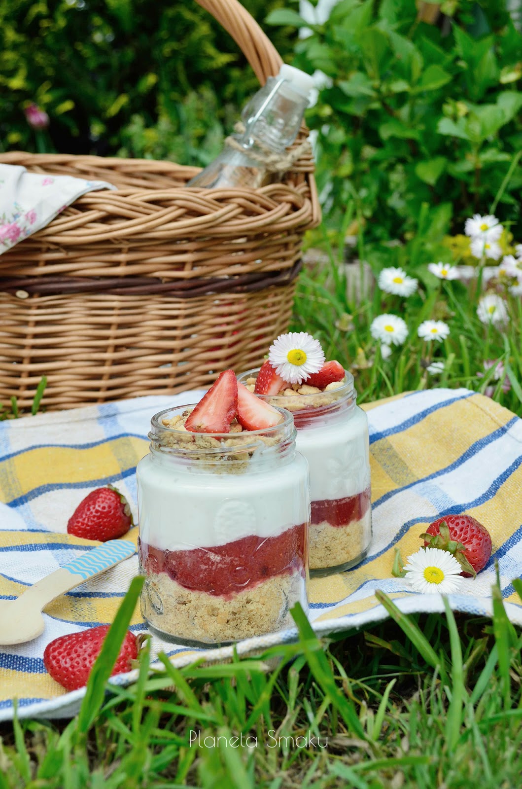 Lato, wakacje… To idealny czas na piknik! Mimo niezdecydowanej pogody zawsze można spędzić miło czas na świeżym powietrzu. Wystarczy koc i skrawek zielonej trawy. I koniecznie jakieś smakołyki, najlepiej zapakowane w wiklinowy koszyk 🙂 Dużo pyszności znajdziecie w najnowszym numerze magazynu „Maszkety”. Moja propozycja to serniczki w słoikach.