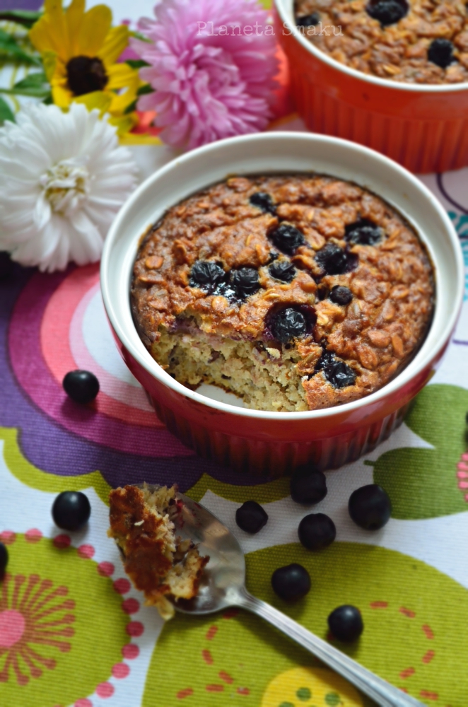 Skok temperatur za oknem spowodował, że nabrałam ochoty na rozgrzewające, pieczone śniadanie. Dziś wybrałam więc połączenie banana, masła orzechowego i aronii, przełamującej słodko-korzenny smak owsianki. Dodatkowo, owoce aronii mają mnóstwo witaminy C, która przyda się szczególnie w tym okresie. Co więcej, aronia podnosi ciśnienie krwi, przez co można zrezygnować z filiżanki małej czarnej do śniadania 😉 Wypróbujcie, pieczona owsianka jest pyszna!