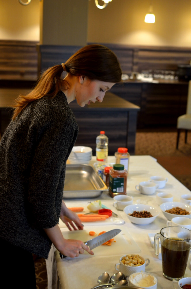 Jako temat wiodący warsztatów wybrałam zdrowe, jesienne smaki. Pokazałam więc uczestnikom, jak zrobić granolę miodowo-orzechową, ciasteczka pełnoziarniste z orzechami i czekoladą oraz zupę-krem z soczewicy i marchewki. Starałam się przekazać uczestnikom kilka ważnych wskazówek, którymi kieruję się na co dzień i myślę, że zainspirowałam gości do samodzielnego przygotowania podobnych potraw w domu.
