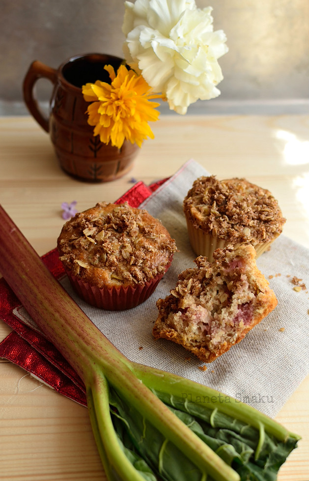 Szybkie i bardzo smaczne muffiny z dodatkiem mąki pełnoziarnistej i płatków owsianych sprawdzą się doskonale w roli podwieczorku. Kwaśny rabarbar przyjemnie ożywia deser, a chrupiąca kruszonka nadaje dodatkowego charakteru. Obowiązkowe do zrobienia w sezonie!