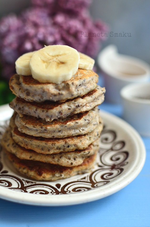 Pyszne, sycące i proste placuszki z mnóstwem dobroczynnych składników. Nasiona chia, oprócz tego, że są bardzo zdrowe, posiadają kolejną właściwość – mogą zastąpić jajko w diecie wegan. Po zalaniu wodą tworzy się z nich bowiem klejąca masa, która świetnie związuje resztę składników. Świetna propozycja na śniadanie bez nabiału i cukru. Polecam!