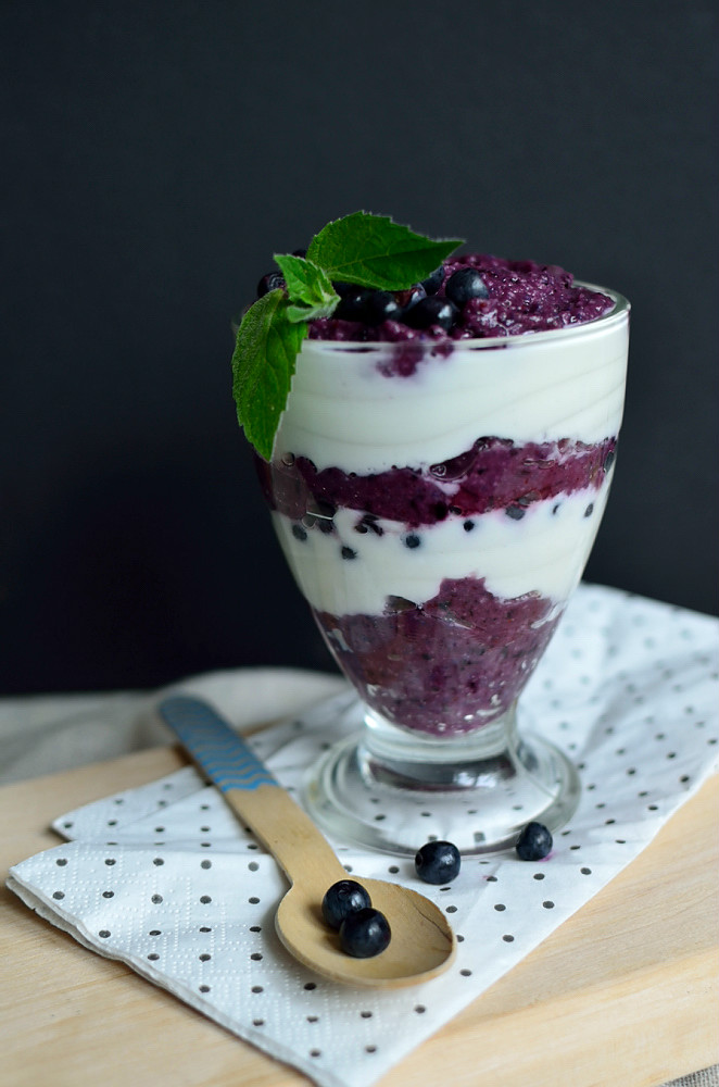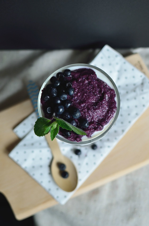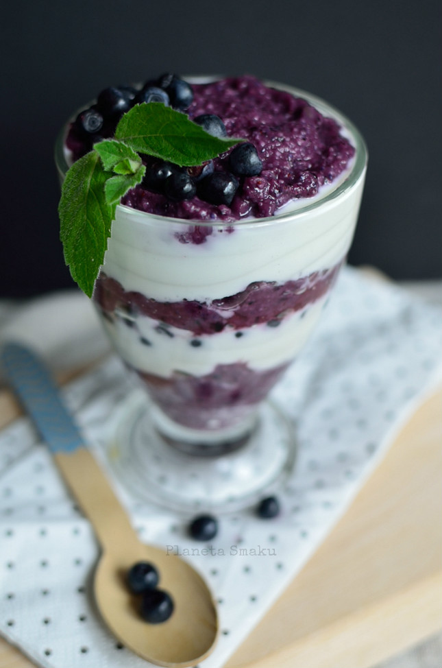 Pomysł na letnie śniadanie? Jagodowy przekładaniec! Fioletowy krem wykonany z kaszy jaglanej w połączeniu z orzeźwiającym jogurtem tworzy pyszny duet – zarówno w smaku, jak i wyglądzie. Zdrowy, lekki deser w jagodowym klimacie.