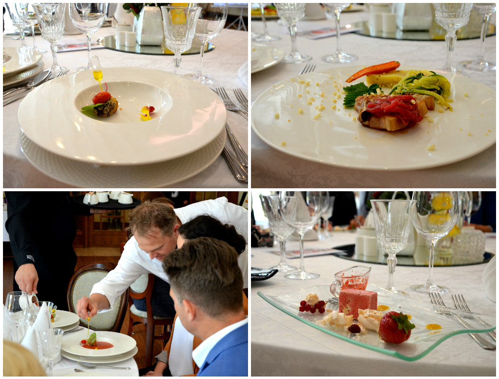 Menu degustacyjne składało się z prostych, ale nietypowych dań. Sam szef określa swoją kuchnię jako „nowoczesną kuchnię polską z akcentami francuskimi”, co widać było we wszystkich potrawach, jakich mieliśmy okazję spróbować. Kunszt kucharza widoczny był na każdym kroku, a moje serce podbiło szczególnie gazpacho z pomidorów i poziomek z olejem lnianym, który został podany w bardzo nowoczesnym stylu. Po raz pierwszy próbowałam też grasicy cielęcej, która – pomimo moich ogromnych obaw – okazała się przyrządzona naprawdę smacznie.