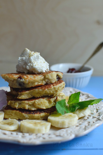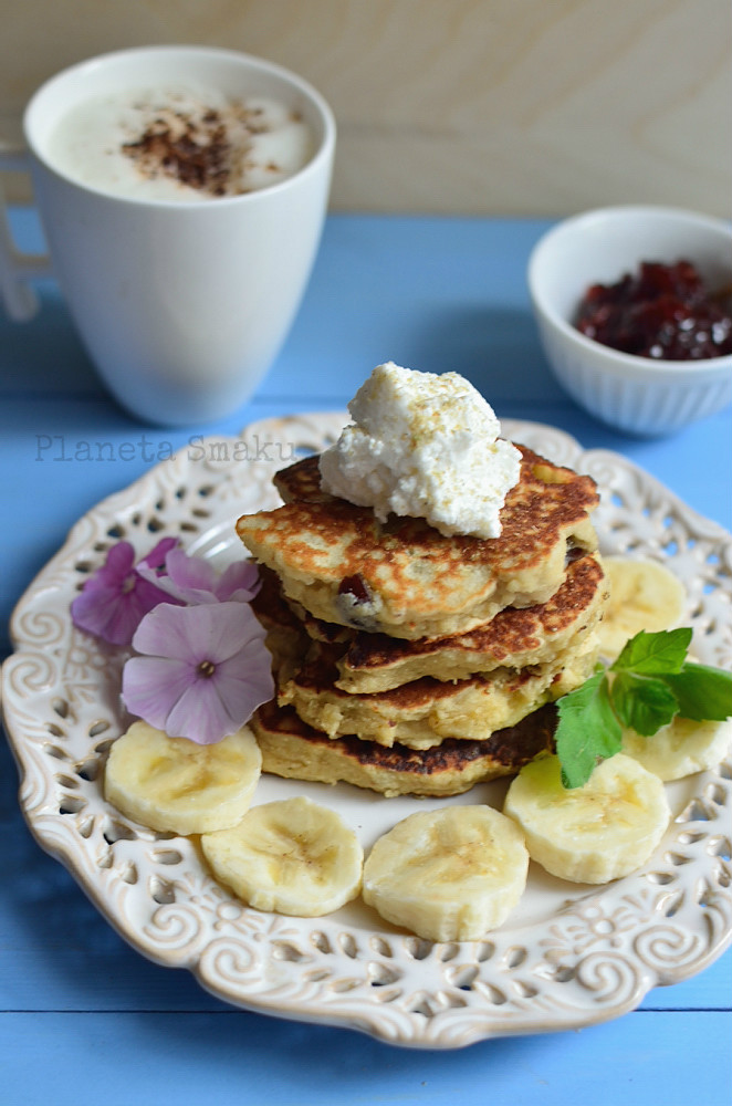 Placuszki bananowe z ricottą to jedna z najsmaczniejszych, śniadaniowych propozycji, jakie jadłam w ostatnim czasie. Są tak dobre, że mogłabym je robić niemal codziennie! Naturalną słodycz zawdzięczają bananowi i daktylom, przez co dodatek cukru jest w nich absolutnie zbędny. Placuszki są bardzo delikatne i puszyste. Na pewno wpływ na taką teksturę ma mąka kokosowa i ricotta – nie warto więc rezygnować z tych składników. Jednak można urozmaicić nieco ciasto, dodając ulubionych bakalii, kakao lub drobnych owoców, np. jagód (próbowałam, jest pysznie!). Bardzo polecam, zarówno na śniadanie, jak i na podwieczorek.