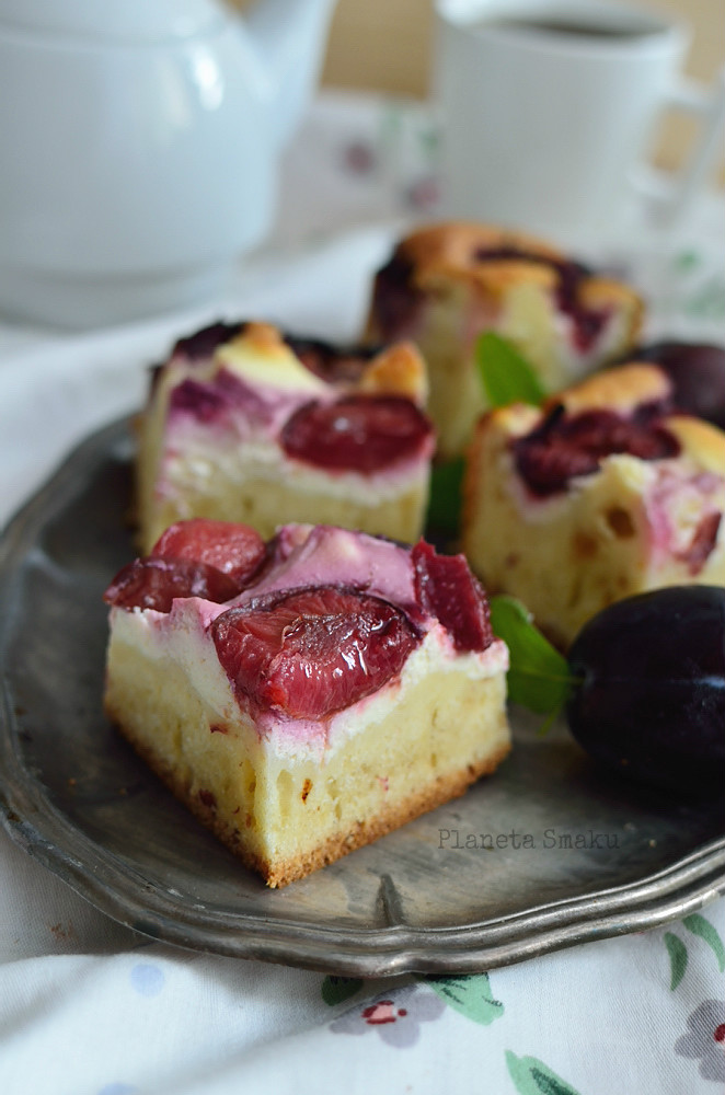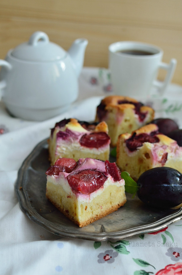 Sama nie wiem dlaczego, ale ciasto ze śliwkami kojarzy mi się z końcem wakacji. Kilka lat temu zamieściłam na blogu przepis na ciasto drożdżowe z serem i śliwkami. Dziś, trochę sentymentalnie, powracam do początków mojego bloga – to już 4 lata, odkąd piszę, robię zdjęcia, gotuję i smakuję – wszystko po to, by móc podzielić się z Wami tym, co w moim odczuciu zasługuje na upublicznienie. Po tych czterech latach wracam do tych samych smaków w nieco innej formie. Są śliwki, jest ser, ale ciasto tym razem jest ucierane. Prostota triumfuje.