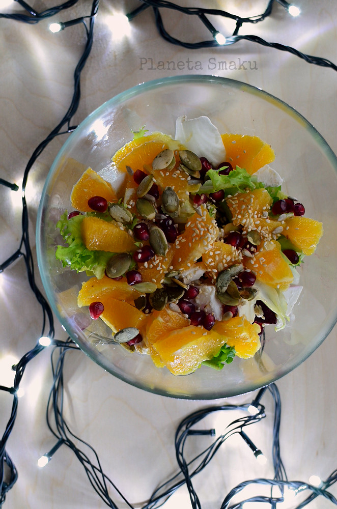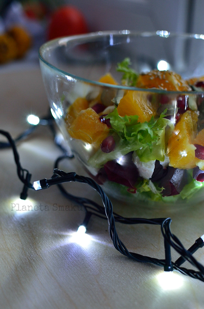 Karnawał trwa w najlepsze (chociaż jako studentka w czasie sesji jakoś tego nie odczuwam). Warto być przygotowanym w razie niespodziewanej (lub planowanej) wizyty znajomych. Z doświadczenia wiem, że sałatka to must have na wszelkich domowych imprezach. Sięgają po nią zarówno panie („przecież dbam o linię, nie będę zapychać się chipsami”) jak i panowie („może wypadałoby przekąsić coś innego, niż tylko chipsy…”). To tak z przymrużeniem oka – a fakt jest taki, że mam dla Was świetny przepis na zaskakująco pyszną sałatkę! Idealnie wyważone smaki: słodkie, pieczone buraki, lekko kwaśna pomarańcza, słona feta, soczysty granat i chrupiące ziarna. Lekka, kolorowa i bardzo smaczna sałatka, która sprawdzi się zarówno na imprezie, jak i na lunch czy kolację. Znajomi z pewnością poproszą Was o przepis 😉 Spróbujcie!