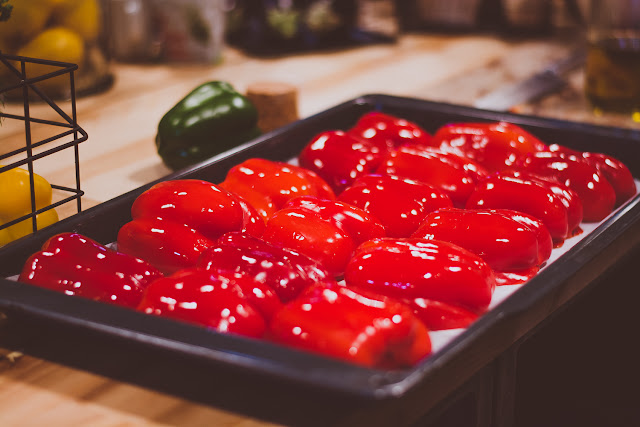 - pasta z pieczonego selera: selera obrać i pokroić w małe kawałki. Wyłożyć na blachę do pieczenia, posypać solą i pieprzem, polać odrobiną oliwy. Piec przez około 30-40 minut, aż seler będzie miękki. Lekko przestudzić. Zmiksować z dodatkiem tahini. Doprawić wędzoną papryką i polać oliwą.