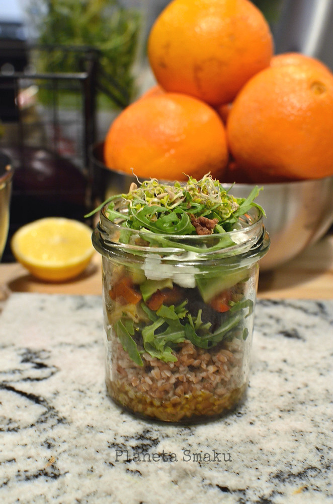 – sałatki w słoikach: na dole – ulubiony dressing. A potem układamy to, co mamy pod ręką 🙂 – kasza, makaron, ryż, soczewica, ulubione orzechy, pestki, warzywa, kiełki. Świetna, jednoporcjowa, bardzo wygodna forma przekąski.