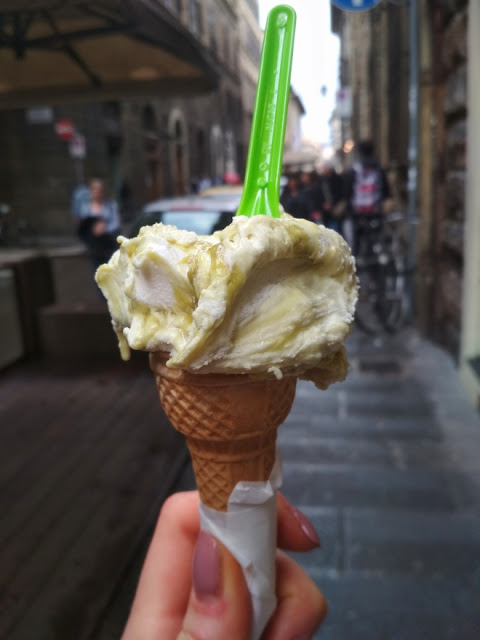 Słuchajcie, to nie podlega dyskusji. Jeśli będziecie we Florencji, KONIECZNIE zajrzyjcie do lodziarni La Carraia! Tamtejsze lody dosłownie zwaliły mnie z nóg. Dość powiedzieć, że wzięłam jedną porcję, przeszłam kilka kroków i…. wróciłam po więcej. Biała czekolada z kremem pistacjowym – ten smak będzie za mną chodzić chyba do końca życia 🙂 Można tam wziąć porcję „mini” za 1 euro, jednak nie polecam tej opcji – bierzcie od razu więcej! 😀