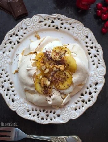 Bezy z orzechami, bitą śmietaną i karmelizowanym bananem