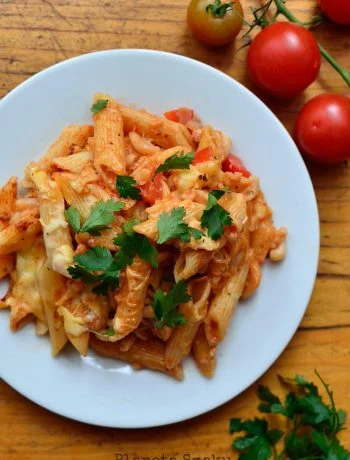 Makaron zapiekany z sosem pomidorowym i beszamelem