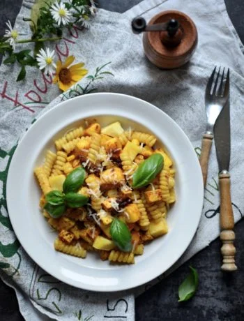 Makaron curry z tofu i dynią